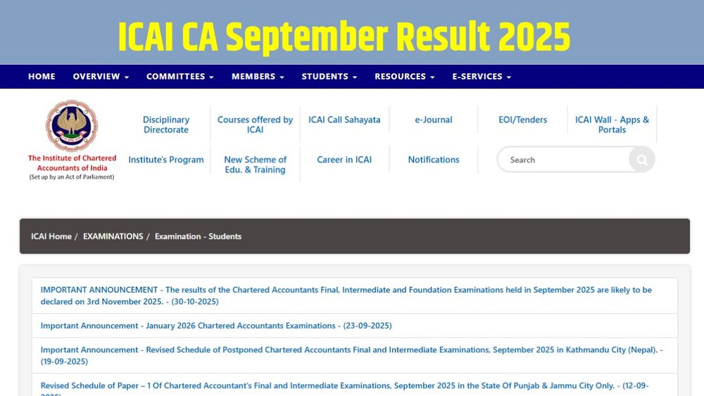 स्टेप 2. होम पेज पर “CA September 2025 Result” लिंक पर क्लिक करें।