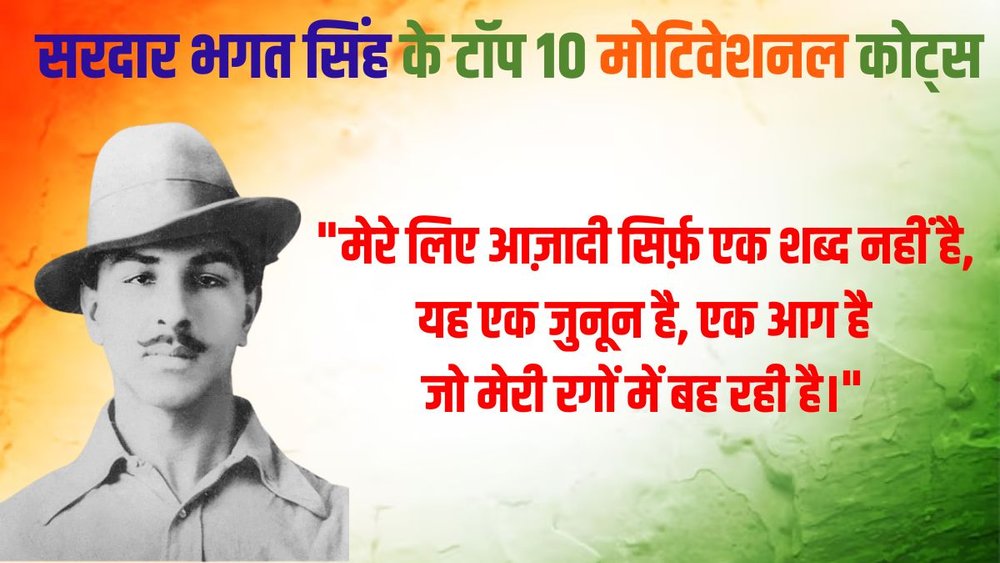 सोशल मीडिया पर लोग एक-दूसरे स्वतंत्रता दिवस की बधाई भेज रहे हैं। इस आर्टिकल में हम आपको भगत सिंह के कुछ प्रसिद्ध कोट्स के बारे में बता रहे हैं, जिन्हें आप अपने दोस्तों और रिश्तेदारों को भेजकर बधाई दे सकते हैं। ये कोट्स पढ़ने वाला जोश से भर जाएगा।