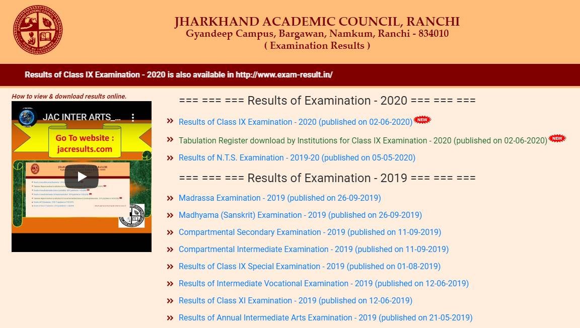 छात्र अपना रिजल्ट आधिकारिक वेबसाइट jac.jharkhand.gov.in, jacresults.com तथा jharresults.nic.in पर विजिट कर चेक कर पाएंगे। 9वीं का रिजल्ट चेक करने का लिंक वेबसाइट के होमपेज पर ही दिख जाएगा।