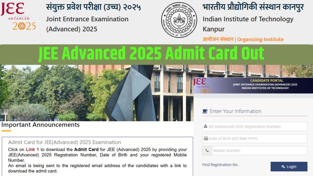 jeeadv.ac.in, JEE Advanced 2025 Admit Card: जेईई एडवांस्ड परीक्षा 2025 के लिए एडमिट कार्ड का इंतजार आखिरकार खत्म हो गया है। आईआईटी कानपुर ने संयुक्त प्रवेश परीक्षा (JEE) एडवांस्ड 2025 के लिए एडमिट कार्ड जारी कर दिए हैं। 18 मई को होने वाली इस परीक्षा के लिए जो भी कैंडिडेट पात्र हैं वह आधिकारिक वेबसाइट jeeadv.ac.in पर जाकर प्रवेश पत्र डाउनलोड कर सकते हैं। एडमिट कार्ड डाउनलोड करने के लिए रजिस्ट्रेशन नंबर, जन्मतिथि और रजिस्टर्ड मोबाइल नंबर की आवश्यकता होगी।