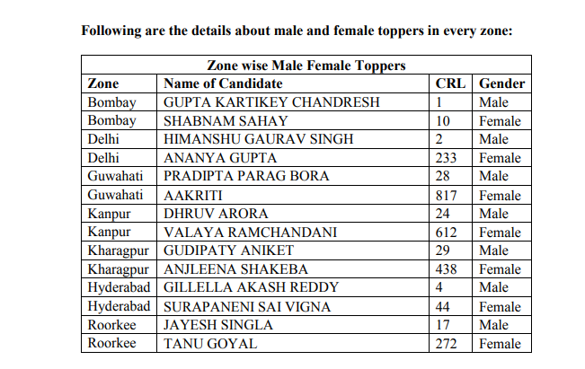 इस बार कुल 5,356 फीमेल कैंडिडेट्स पास हुए हैं। वहीं कुल जेईई एडवांस्ड में 38,705 स्टूडेंट्स पास हुए हैं।