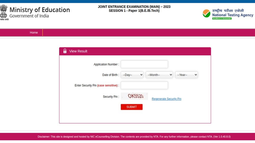 4.जेईई मेन्स 2024 का परिणाम देखने के लिए “सबमिट” पर क्लिक करें।