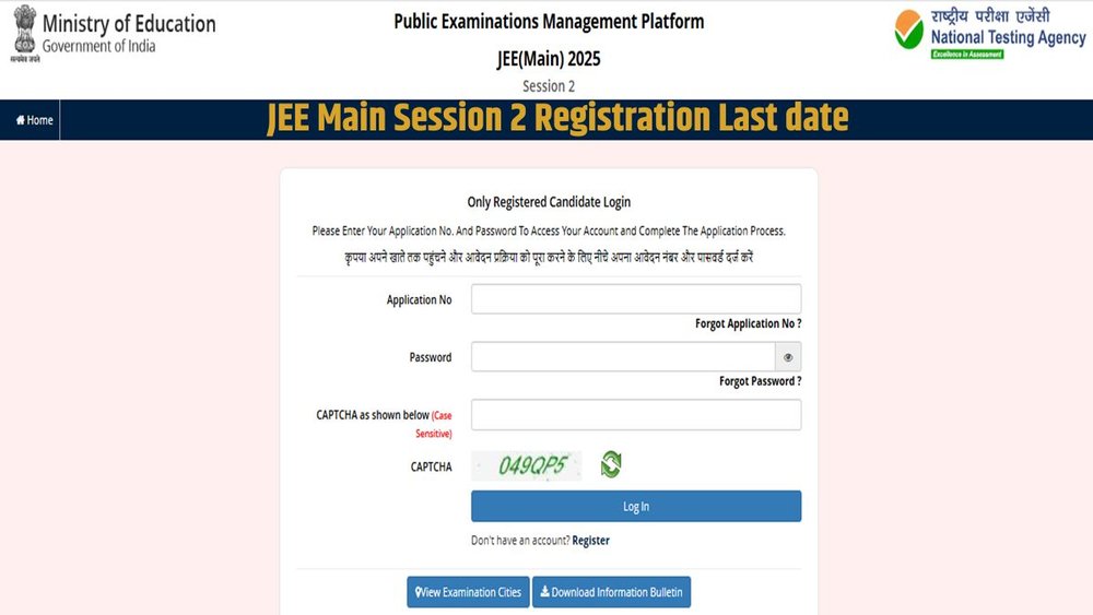 जेईई मेन 2025 की सेशन 2 परीक्षा के लिए रजिस्ट्रेशन की प्रक्रिया मंगलवार (25 फरवरी 2025) को समाप्त हो जाएगी। जिन इच्छुक और पात्र उम्मीदवारों ने अभी तक पंजीकरण नहीं कराया है वह एनटीए की आधिकारिक वेबसाइट jeemain.nta.nic.in पर जाकर अंतिम तिथि वाले दिन रात 9 बजे से पहले रजिस्ट्रेशन करा सकते हैं। हालांकि कैंडिडेट्स को शुल्क का भुगतान करने के लिए रात 12 बजे तक का समय मिलेगा। बता दें कि जेईई मेन सेशन 2 की परीक्षा 1 से 8 अप्रैल 2025 के बीच आयोजित की जाएगी।