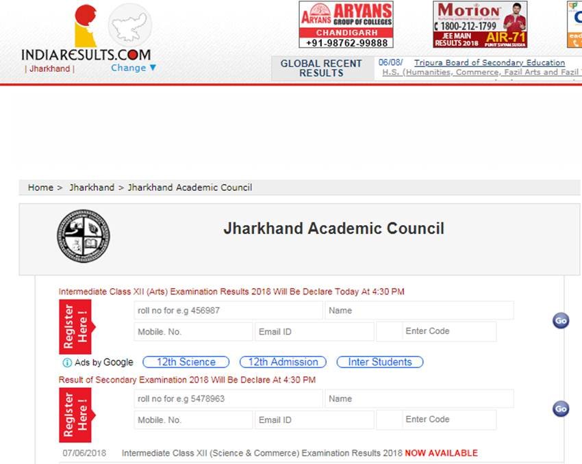 JAC झारखंड बोर्ड 10वीं रिजल्ट 2018 LIVE UPDATES