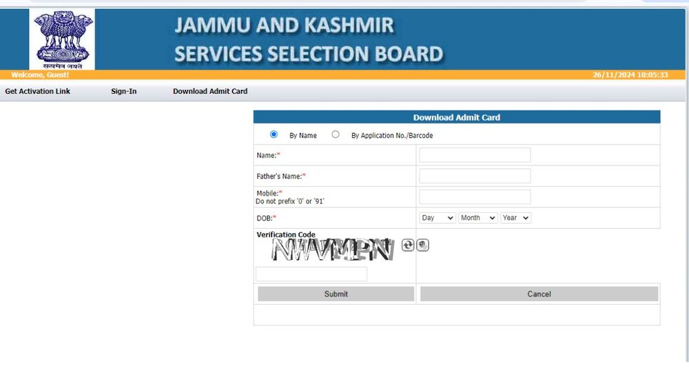 स्टेप 4. JKSSB कांस्टेबल भर्ती परीक्षा 2024 का एडमिट कार्ड स्क्रीन पर प्रदर्शित होगा।