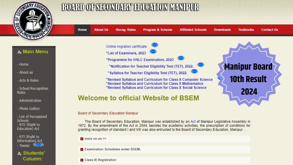 Manipur Board BSEM HSLC 10th Result 2024: मणिपुर बोर्ड 10वीं कक्षा का परीक्षा परिणाम आज (27 मई 2024) दोपहर 3:30 बजे जारी हो गया है। इस साल राज्य का कुल पासिंग प्रतिशत 93.03 फीसदी रहा। जिन स्टूडेंट्स ने इस साल परीक्षा दी है वह माध्यमिक शिक्षा बोर्ड, मणिपुर (बीएसईएम मणिपुर) की आधिकारिक वेबसाइटों bsem.nic.in और manresults.nic.in पर अपना रिजल्ट देख सकते हैं। इसके अलावा examsresults.net and results.nic.in पर भी स्कोरकार्ड उपलब्ध होगा।