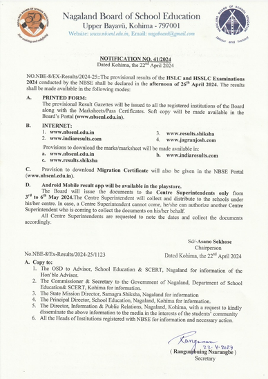 माध्यमिक शिक्षा मण्डल द्वारा आयोजित हाईस्कूल, हायर सेकेण्डरी एवं विद्यालय पूर्व रिक्षा में डिप्लोमा (डी.पी.एस.ई.) मुख्य परीक्षा 2024 के परीक्षा परिणाम दिनांक 24.04.2024 को अपरान्ह 4:00 बजे माध्यमिक रिक्षा मण्डल मुख्यालय के सभागृह में घोषित किये जा रहे है। मण्डल द्वारा विभिन्न पोर्टल के माध्यम से परीक्षा परिणाम ज्ञात करने की सुविधा उपलब्ध कराई गई है। वेबसाईट जिन पर परिणाम उपलब्ध रहेगा
