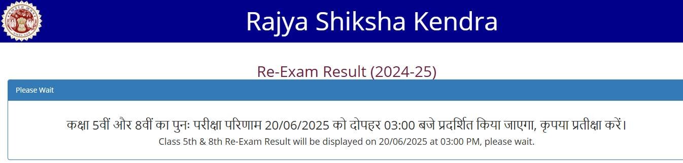 राज्य शिक्षा केंद्र मध्य प्रदेश (RSKMP) आज (20 जून 2025) दोपहर 3 बजे कक्षा 5वीं और कक्षा 8वीं की पुनर्परीक्षा का परिणाम जारी करेगा।