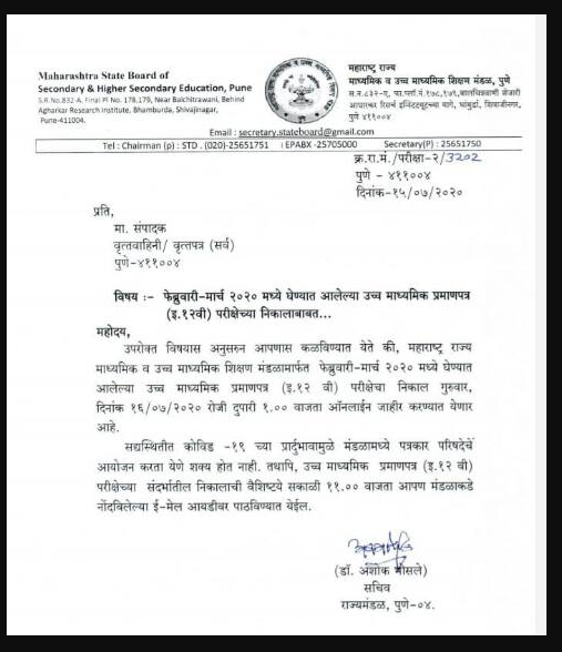 Maharashtra Board HSC Result 2020 Latest Update: Check Here