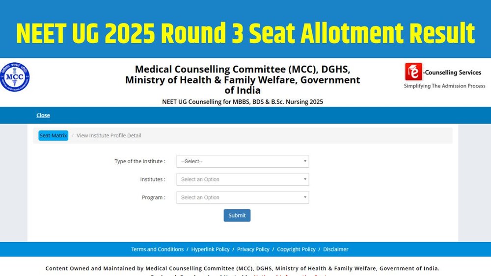 राष्ट्रीय पात्रता सह प्रवेश परीक्षा (NEET UG) 2025 की काउंसलिंग प्रक्रिया अंतिम चरण में पहुंच चुकी है, जिसके बाद अब मेडिकल काउंसलिंग कमेटी (MCC) जल्द ही राउंड 3 का सीट आवंटन परिणाम (NEET UG 2025 Seat Allotment Result) अपनी आधिकारिक वेबसाइट mcc.nic.in पर जारी करेगी, जिसे चेक और डाउनलोड करने की कंप्लीट डिटेल यहां मिलेगी।