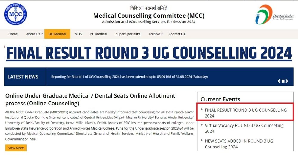 नीट यूजी काउंसलिंग राउंड 3 रिजल्ट 2024 डायरेक्ट लिंक