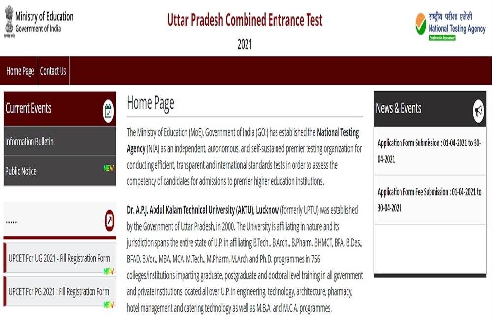 NTA UPCET 2021: नेशनल टेस्टिंग एजेंसी (NTA) ने उत्तर प्रदेश कंबाइंड एंट्रेंस टेस्ट (UPCET) 2021 के लिए आवेदन प्रक्रिया शुरू कर दी है। UPCET 2021 की परीक्षाएं 18 मई को होंगी। इच्छुक और योग्य उम्मीदवार आधिकारिक वेबसाइट upcet.nta.nic.in पर जाकर आवेदन कर सकते हैं। आवेदन पत्र जमा करने की अंतिम तिथि 30 अप्रैल, 2021 निर्धारित की गई है।