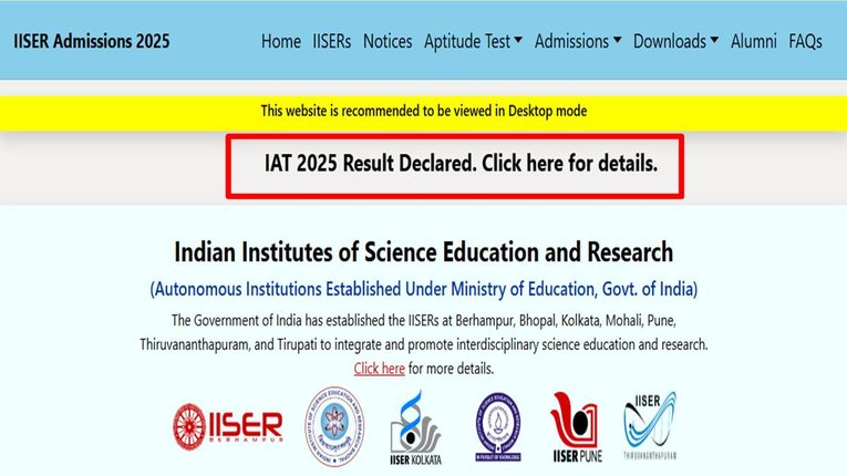 IISER IAT Result 2025, Rankcard, iiseradmission.in: IISER प्रवेश परीक्षा में शामिल होने वाले उम्मीदवार अब iiseradmission.in पर IAT 2025 का…