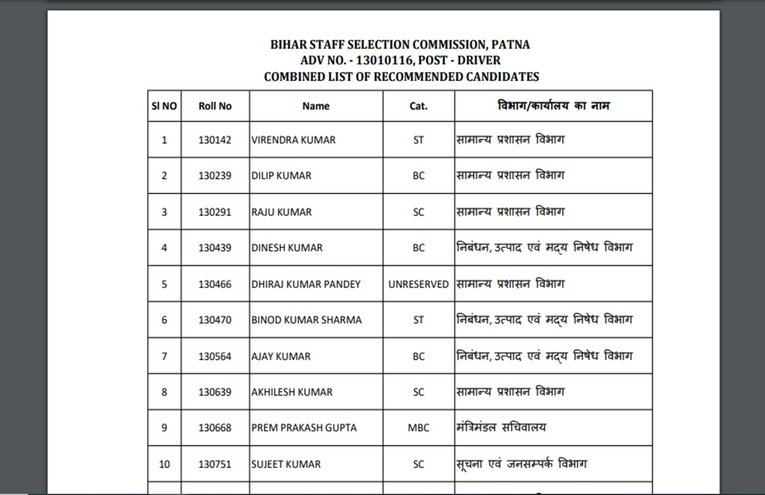 BSSC Final Result 2021: बिहार कर्मचारी चयन आयोग (BSSC) ने ड्राइवर पदों के लिए योग्य उम्मीदवारों के लिए मेडिकल टेस्ट…