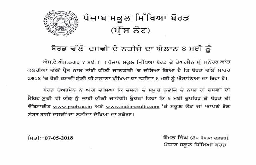 पिछले साल की तरह इस PSEB प्रेस कॉन्फ्रेंस नहीं करेगा। छात्र अपने मार्क्स 9 मई को चेक कर सकेंगे।