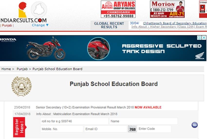 ऑनलाइन नतीजे देखने के लिए http://www.pseb.ac.in या indiaresults.com पर लॉगइन करें। नतीजे जारी होने पर ‘PSEB Class 10 Result 2018’ के लिंक पर क्लिक करें। इसके बाद अपना रोल नंबर सब्मिट करें। रोल नंबर सब्मिट करते ही रिजल्ट खुल जाएगा। डाउनलोड कर प्रिंटआउट निकाल लें। इसके अलावा एसएमएस पर भी रिजल्ट देख सकते हैं। एसएमएस से देखने के लिए ‘PB10 <Roll no.>’ टाइप कर 5676750 पर सेंड कर दें। रिजल्ट आपको मोबाइल फोन पर मिल जाएगा। बता दें 12वीं के नतीजे 23 अप्रैल को जारी हुए थे। वहीं 10वीं के छात्र-छात्राओं का इंतजार भी अब खत्म होगा।