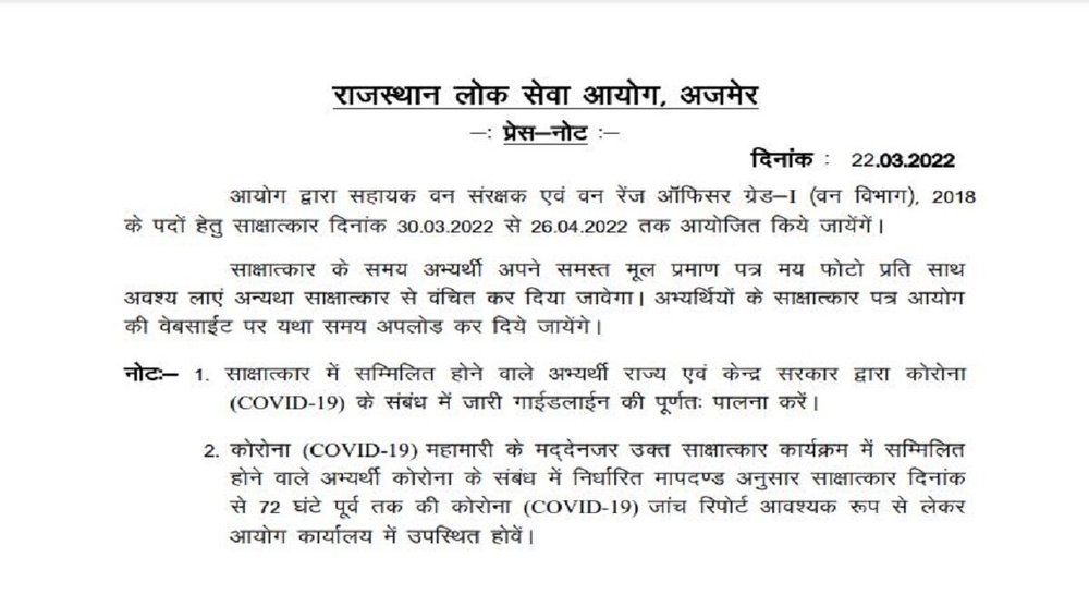 3.यहां दिए गए New Icon22/03/2022 – Press Note Regarding Interview Dates for ACF and Forest Range Officer Gr-I Comp. Exam-2018 के लिंक पर क्लिक करें।