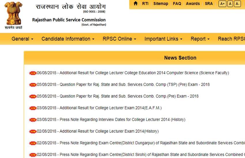 होम पेज से न्यूज सेक्शन सिलेक्ट करें। उत्तर कुंजी जारी होने पर यहां आपको ‘Answer key for RAS/RTS Comb. Comp. (PRE) Exam – 2018’ लिंक दिखेगा। लिंक पर क्लिक करें। क्लिक करते ही ‘RPSC RAS/RTS exam 2018 Answer keys’ खुल जाएगी। ‘RPSC RAS/RTS exam 2018 Answer keys’ पीडीएफ फाइल फॉर्मैट में होगी जिसे आप आसानी चेक कर सकते हैं। आप चाहें तो RPSC RAS/RTS exam 2018 Answer keys की पीडीएफ फाइल डाउनलोड कर सेव भी कर सकते हैं। बता दें हर साल Rajasthan Public Service Commission (RPSC) विभिन्न सरकारी दफ्तरों में भर्ती के लिए परीक्षाओं का आयोजन कराता है। RPSC Rajasthan Administrative Service (R.A.S) और Rajasthan Police Service (R.P.S) पदों पर भर्ती करता है। भर्तियां RAS, RPS, RTS और Rajasthan Sub-ordinate Services के लिए विभिन्न परीक्षाओं के तहत होती है।