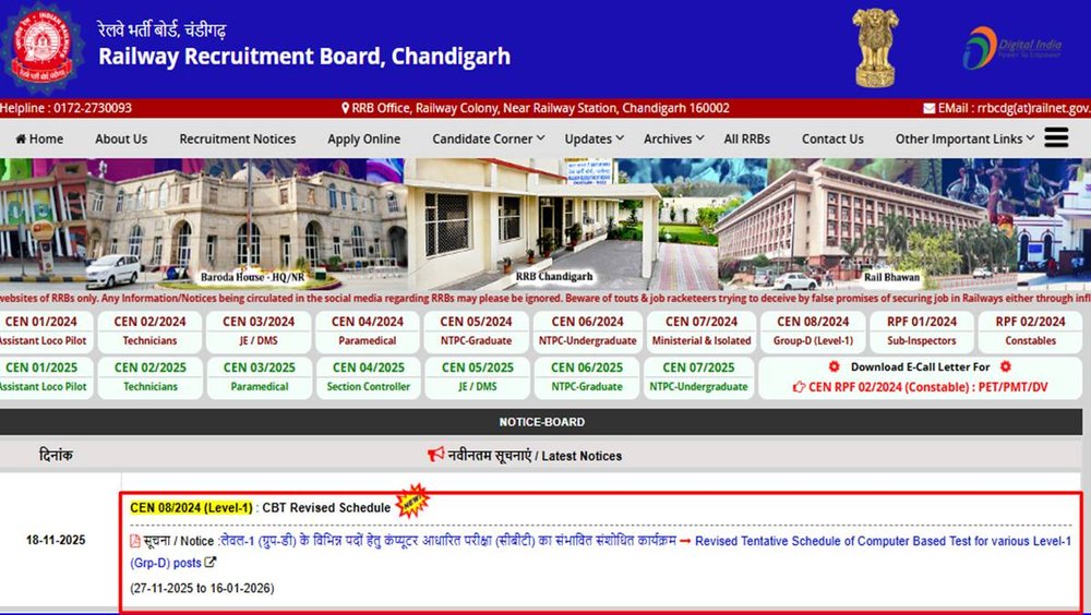 RRB Group D Exam date 2025: रेलवे भर्ती बोर्ड (RRB) ने ग्रुप डी भर्ती के लिए आयोजित होने वाली कंप्यूटर-आधारित परीक्षा (सीबीटी-1) का नया शेड्यूल जारी कर दिया है। बोर्ड की ओर से जारी एक ऑफिशियल नोटिफिकेशन के मुताबिक, आरआरबी ग्रुप डी सीबीटी 1 परीक्षा अब 27 नवंबर से शुरू होगी और 16 जनवरी 2026 तक चलेगी। पहले यह एग्जाम 17 नवंबर से शुरू होना था, लेकिन कोर्ट में इस भर्ती से जुड़ा एक केस लंबित होने के चलते इसे स्थगित कर दिया गया था।