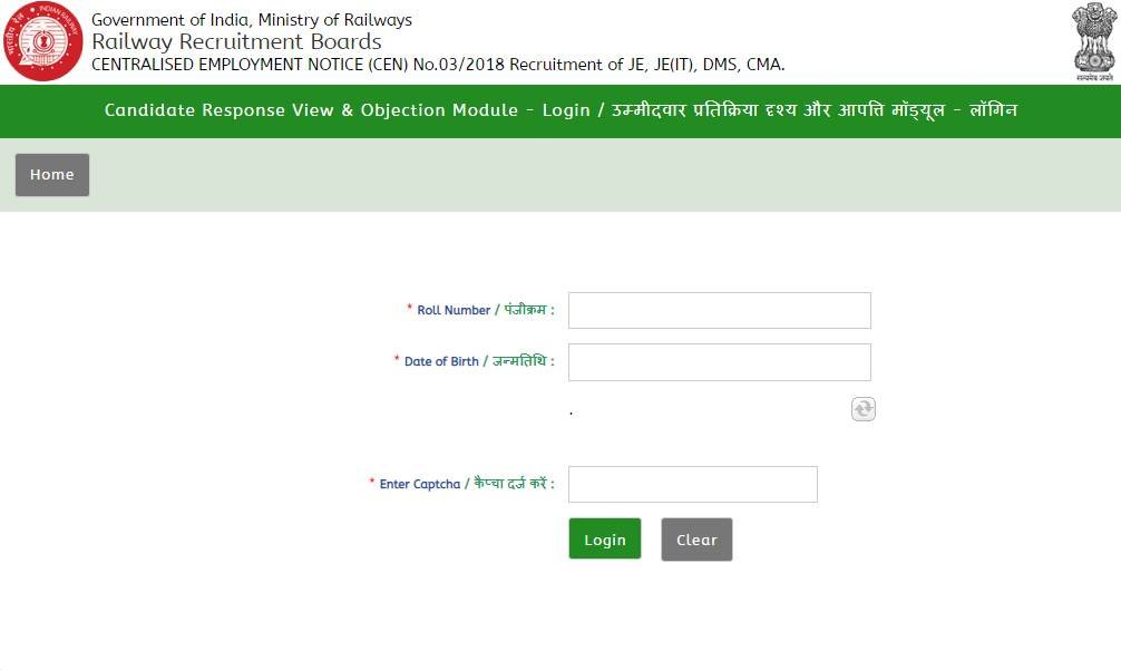- यदि आपको RRB जेई उत्तर कुंजी 2019 के खिलाफ कोई आपत्ति है, तो आपत्ति लिंक में लॉगिन करें।