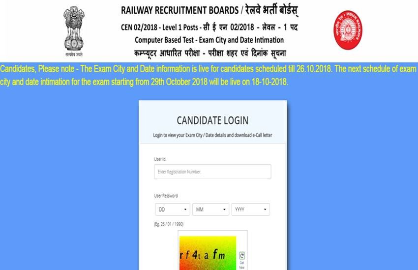 RRB ने अपनी वेबसाइट्स पर आगे की परीक्षाओं की डिटेल्स जारी होने की नोटिफिकेशन जारी कर दी है। इसके मुताबिक, 26 अक्टूबर से शेड्यूल हुई परीक्षा के अभ्यर्थियों की एग्जाम सिटी और डेट डिटेल्स अब लाइव हैं। अगले शेड्यूल की परीक्षाएं (29 अक्टूबर से शुरू होने वाली परीक्षा) 18 अक्टूबर को लाइव होंगी। 26 अक्टूबर के बाद के शेड्यूल की बात करें तो परीक्षा 29 अक्टूबर से होंगी। इस तारीख से परीक्षा में सम्मिलित होने वाले अभ्यर्थी अपनी एग्जाम सिटी और डेट डिटेल्स 18 अक्टूबर से हासिल कर सकेंगे। चलिए अब जानते हैं RRB Group D Admit Card डाउनलोड करने और एग्जाम डिटेल्स चेक करने का तरीका।