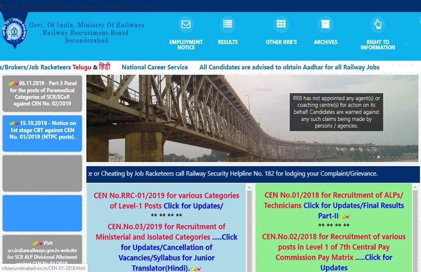 स्टेप 1: सबसे पहले आधिकारिक वेबसाइट rrbsecunderabad.nic.in पर जाएं।