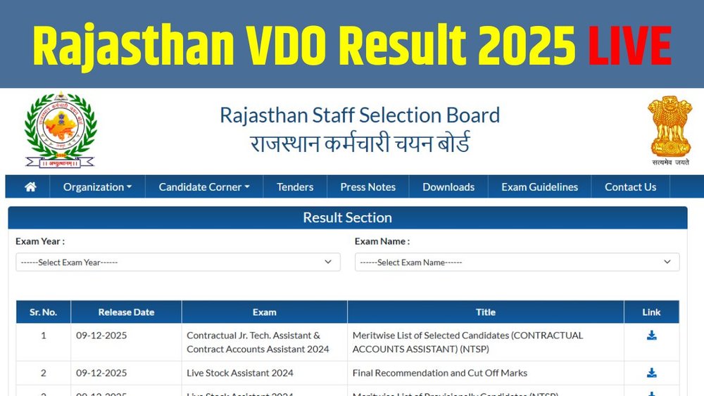 Rajasthan VDO Result 2025 LIVE: राजस्थान ग्राम विकास अधिकारिक रिजल्ट कहां होगा जारी ?