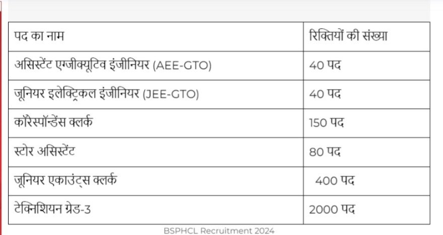 BSPHCL Recruitment 2024: बिहार स्टेट पावर होल्डिंग कंपनी लिमिटेड की तरफ से अलग-अलग पदों पर जारी की गई भर्तियों में 2610 रिक्तियों को भरा जाएगा, जिसकी डिटेल इस प्रकार है।