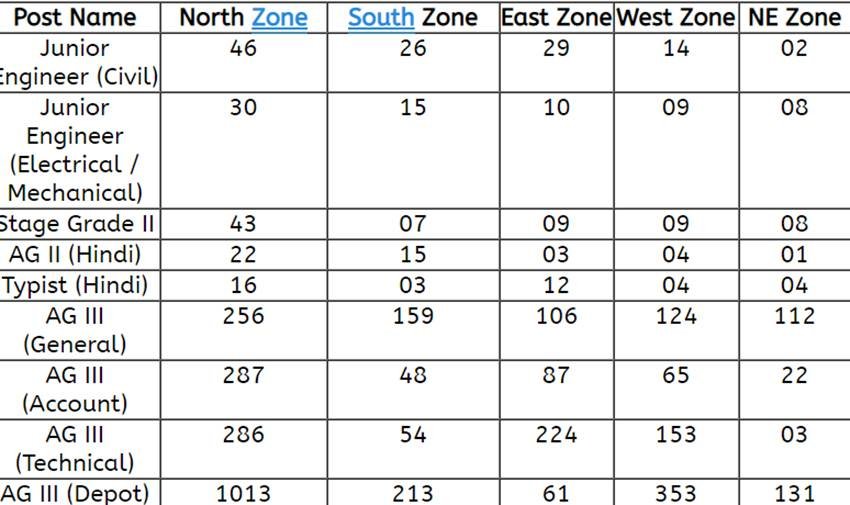 मुंबई डिवीजन 792, दाहोद कार्यशाला 187, अहमदाबाद डिवीजन 603, पर्ल वर्कशॉप 396, रतलाम डिवीजन 455, बड़ौदा डिवीजन 489, भावनगर डिवीजन 157, राजकोट डिवीजन 140, महालक्ष्मी कार्यशाला 64, भावनगर वर्कशॉप 73, साबरमती वर्कशॉप 86, हेड क्वार्टर ऑफिस (मुख्यालय कार्यालय) 66- कुल रिक्तियों की संख्यां- 3,553