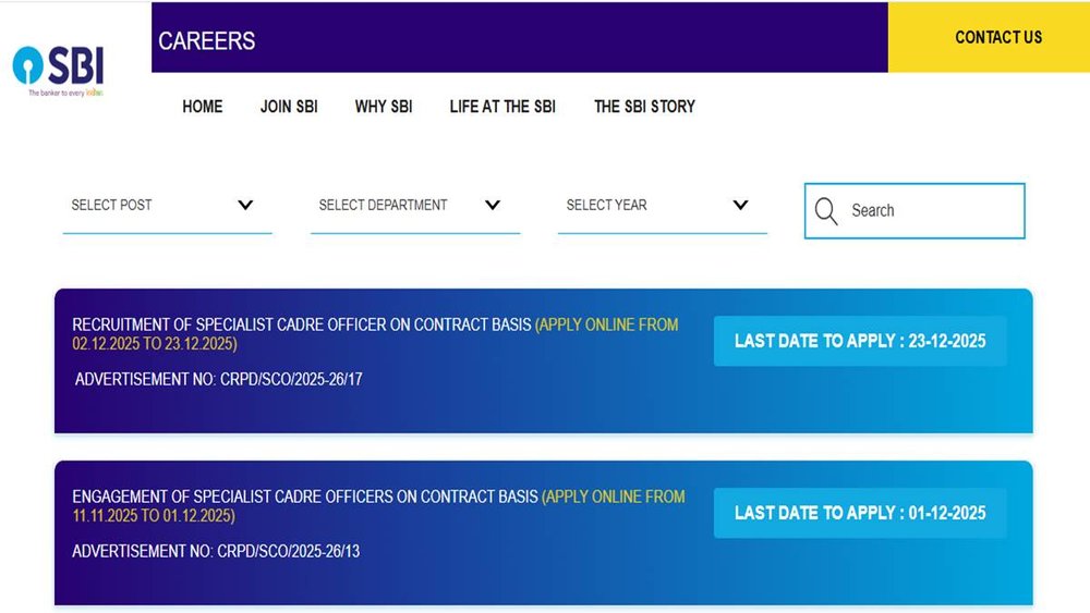 अब RECRUITMENT OF SPECIALIST CADRE OFFICER ON CONTRACT BASIS (Apply Online from 02.12.2025 TO 23.12.2025) लिंक पर क्लिक करें।