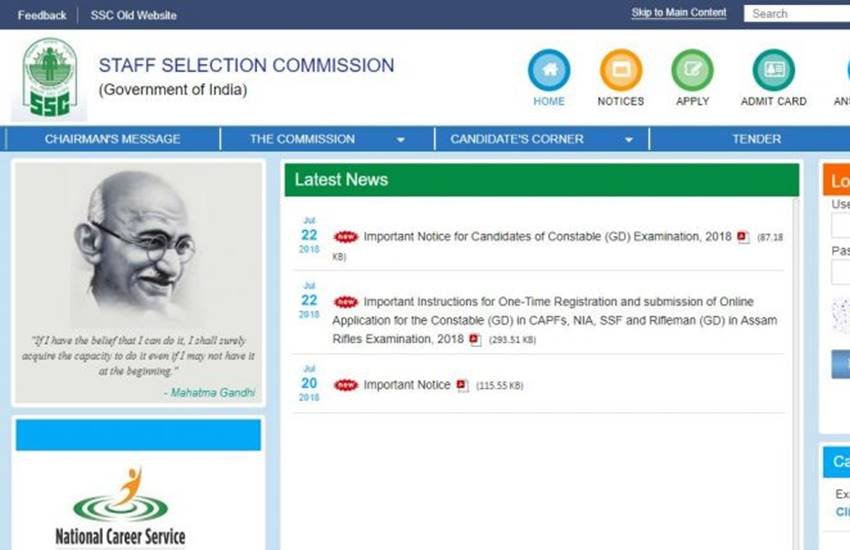 SSC CG Constable Recruitment 2018 Notification, Application Process, http://www.ssc.nic.in: Staff Selection Commission, SSC Constable (GD) CAPFs, NIA, SSF और असम राइफल्स में Rifleman (GD) के लिए भर्ती निकली है। इनके लिए आवदेन 24 जुलाई से शुरू हो गए हैं। वहीं आवेदन करने की आखिरी तारीख 24 अगस्त शाम 5 बजे तक है। इसके लिए ऑनलाइन आवेदन ssc.nic.in पर कर सकते हैं। वहीं आवेदन करने के बाद पेमेंट करने की आखिरी तारीख 28 अगस्त तक है। जो कैंडिडेट इसके लिए अप्लाई करना चाहते हैं उन्हें 20 अगस्त को या इससे पहले एक बार आधिकारिक वेबसाइट पर जाना होगा। इसके लिए एप्लाई करने के लिए कुछ जरूरी डॉक्यूमेंट्स भी चाहिए जैसे 10वीं की मार्कसीट आदि। एक बार रजिस्टर करने के बाद कैंडिडेट्स को फीस पे करनी होगी।