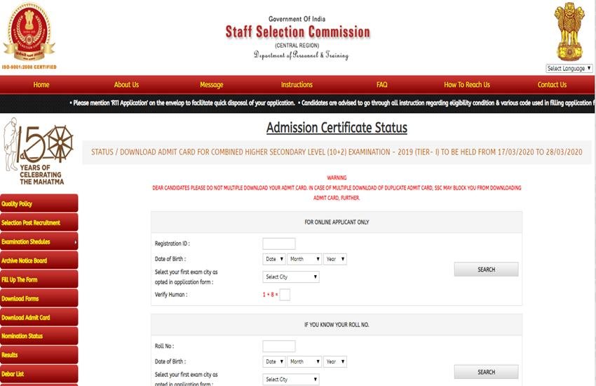SSC CHSL Tier 1 Admit Card 2020: कर्मचारी चयन आयोग (Staff Selection Commission, SSC) ने संयुक्त उच्चतर माध्यमिक स्तर की परीक्षा 2019-20 (Combined Higher Secondary Level Examination 2019-20, CHSL) पहले चरण (Tier-1) की परीक्षा का एडमिट कार्ड डाउनलोड करने का लिंक एक्टिव कर दिया है। जिन उम्मीदवारों ने एसएससी सीएचएसएल भर्ती के लिए आवेदन किया था, वे अब एसएससी की आधिकारिक वेबसाइट ssc.nic.in पर जाकर अपना एडमिट कार्ड डाउनलोड कर सकते हैं। एडमिट कार्ड डाउनलोड करने के लिए रजिस्ट्रेशन नंबर और पासवर्ड की जरूरत होगी।