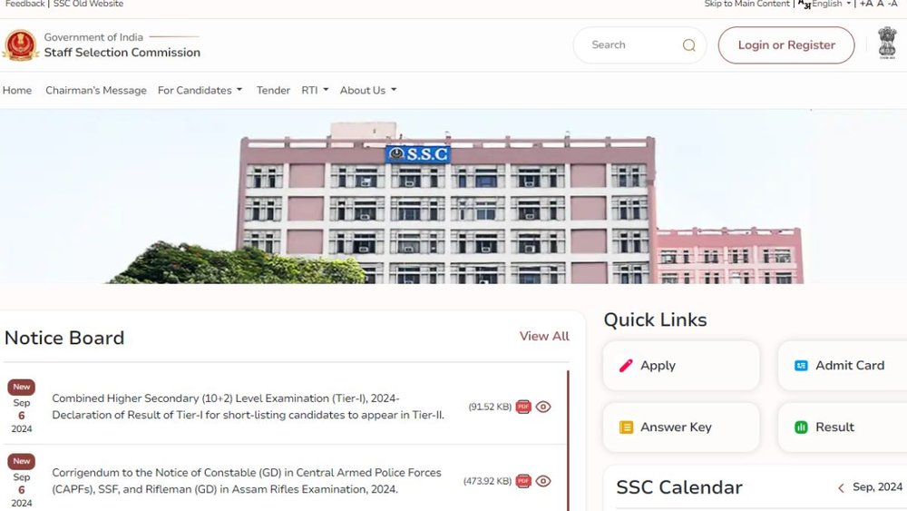 सबसे पहले ऑफिशियल वेबसाइट ssc.gov.in पर विजिट करें।