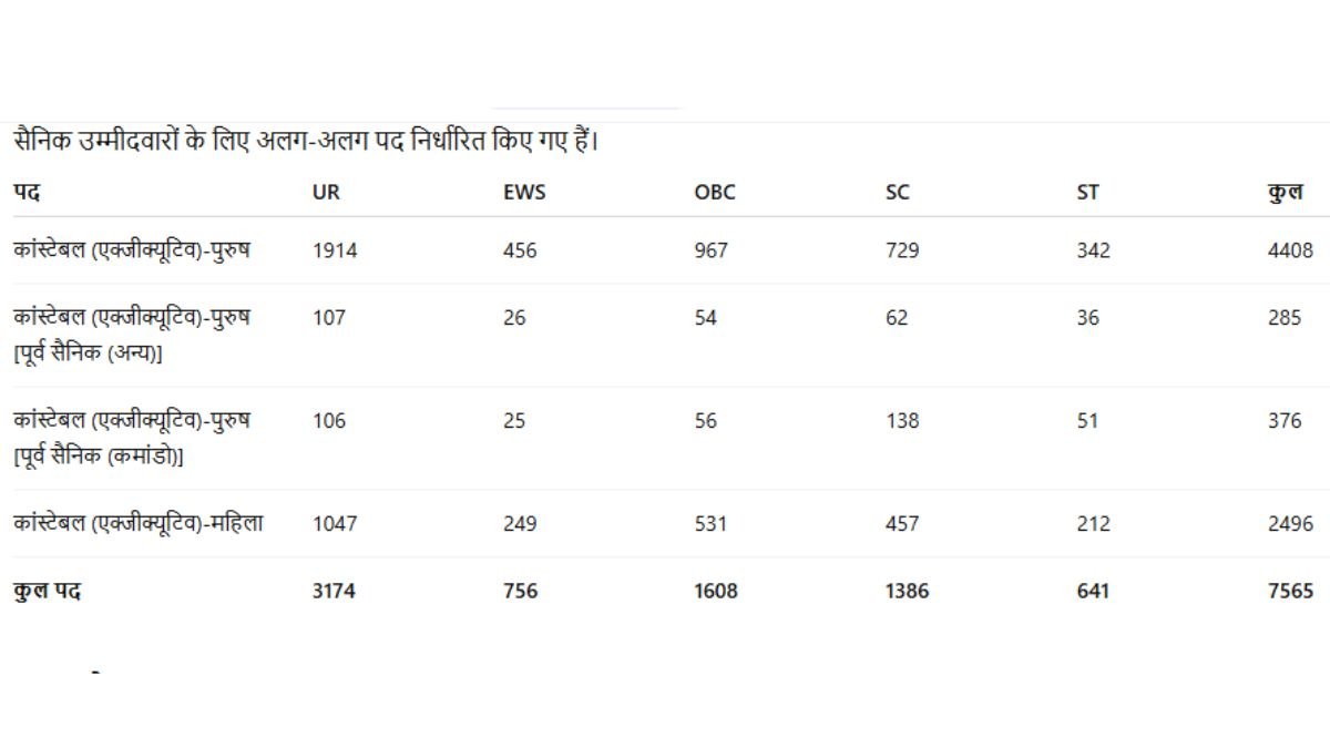 दिल्ली पुलिस कांस्टेबल (एग्जीक्यूटिव) भर्ती 2025 के तहत कुल 7,565 पदों पर नियुक्ति की जाएगी। इनमें पुरुष, महिला और पूर्व सैनिक उम्मीदवारों के लिए अलग-अलग पद निर्धारित किए गए हैं।