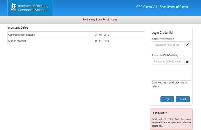 IBPS Clerk Result 2018 चेक करने के लिए सबसे पहले बैंकिंग कार्मिक चयन संस्थान (IBPS) की वेबसाइट ibps.in पर लॉग इन करें। इसके बाद क्लर्क प्री रिजल्ट का लिंक पर क्लिक करें। यहां अपनी डिटेल्स भरकर सबमिट बटन दबाना होगा। इसके बाद आपका रिजल्ट खुल सकेगा