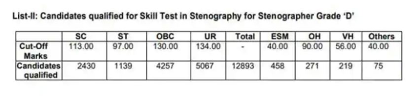 SSC Stenographer Result 2018: स्टेनोग्राफर ग्रेड डी के लिए कटऑफ
