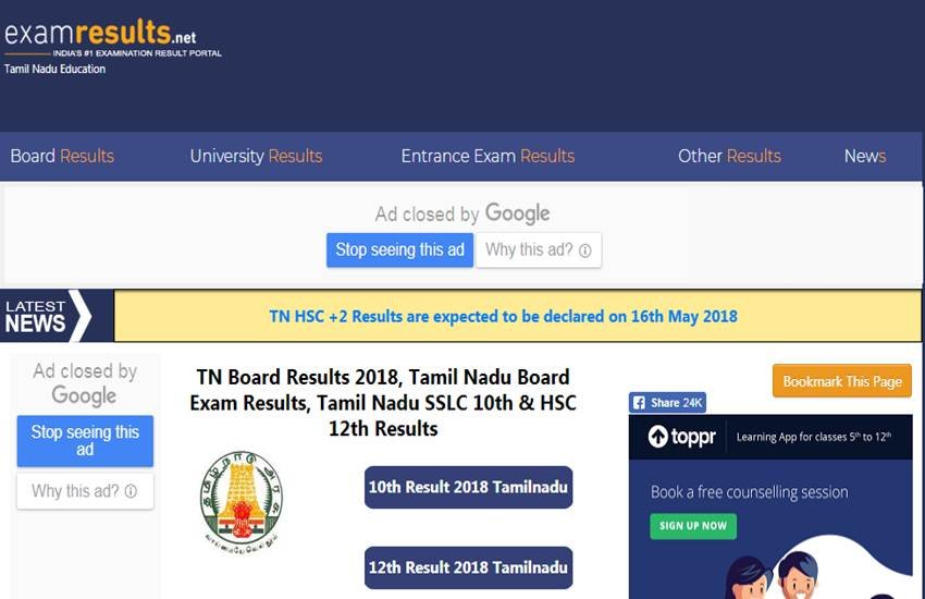 रिपोर्ट्स के अनुसार, तमिलनाडु बोर्ड की ओर से नतीजे बुधवार (16 मई) सुबह साढ़े 9 बजे घोषित किए जाएंगे। छात्र अपना रिजल्ट http://www.dge.tn.nic.in, http://www.dge2.tn.nic.in, http://www.dge1.tn.nic.in, http://www.results.nic.in, examresults.nic.in या indiaresults.com पर देख सकते हैं।