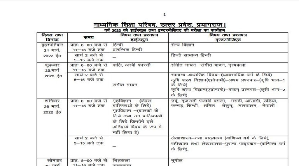 UP Board Exam 2022: उत्तर प्रदेश माध्यमिक शिक्षा परिषद (UPMSP) की ओर से यूपी बोर्ड 10वीं (UP Board 10th Exam 2022) और 12वीं (UP Board 12th Exam 2022) की परीक्षाएं 24मार्च 2022 से शुरू हो रही हैं। यूपी बोर्ड 10वीं और 12वीं की परीक्षाएं 12 अप्रैल 2022 तक चलेंगी। बोर्ड परीक्षार्थी यूपी बोर्ड की आधिकारिक वेबसाइट upmsp.edu.in पर टाइम टेबल चेक कर सकते हैं। साथ ही बोर्ड परीक्षार्थी आधिकारिक वेबसाइट पर परीक्षा संबंधी गाइडलाइंस भी चेक कर सकते हैं।