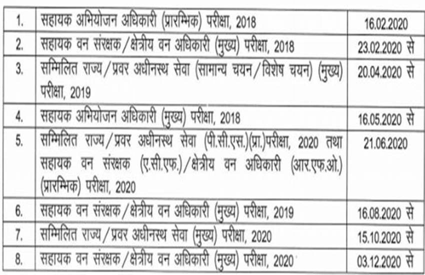 UPPSC Exam Calendar 2020: उत्तर प्रदेश लोक सेवा आयोग (UPPSC) ने 2019 और 2020 के लिए की जाने वाली भर्ती प्रक्रिया का शेड्यूल जारी कर दिया है। यूपीपीएससी द्वारा जारी कैलेंडर के मुताबिक साल 2020 की शुरुआत में सहायक अभियोजन अधिकारी प्रारंभिक परीक्षा 16 फरवरी, 2020 को आयोजित की जानी है। इसके बाद सहायक वन निरीक्षक और क्षेत्रीय वन अधिकारी मेन्स 2018 की परीक्षा 23 फरवरी को आयोजित की जाएगी। फिर आगे 20 अप्रैल से संयुक्त राज्य / वरिष्ठ अधीनस्थ सेवा मेन्स 2019 की परीक्षा आयोजित होगी। सहायक अभियोजन अधिकारी मुख्य 2018 की परीक्षा 16 मई से आयोजित होने वाली है। इसके अलावा RFO / PCS वन अधिकारी 2020 परीक्षा 21 जून को होने वाली है। वहीं सहायक वन अधिकारी मुख्य 2019 और 2020 की परीक्षा क्रमशः 16 अगस्त और 13 दिसंबर, 2020 को आयोजित की जाएगी। साथ ही साथ संयुक्त राज्य अधीनस्थ सेवा की परीक्षा 15 अक्टूबर को आयोजित की जाएगी।