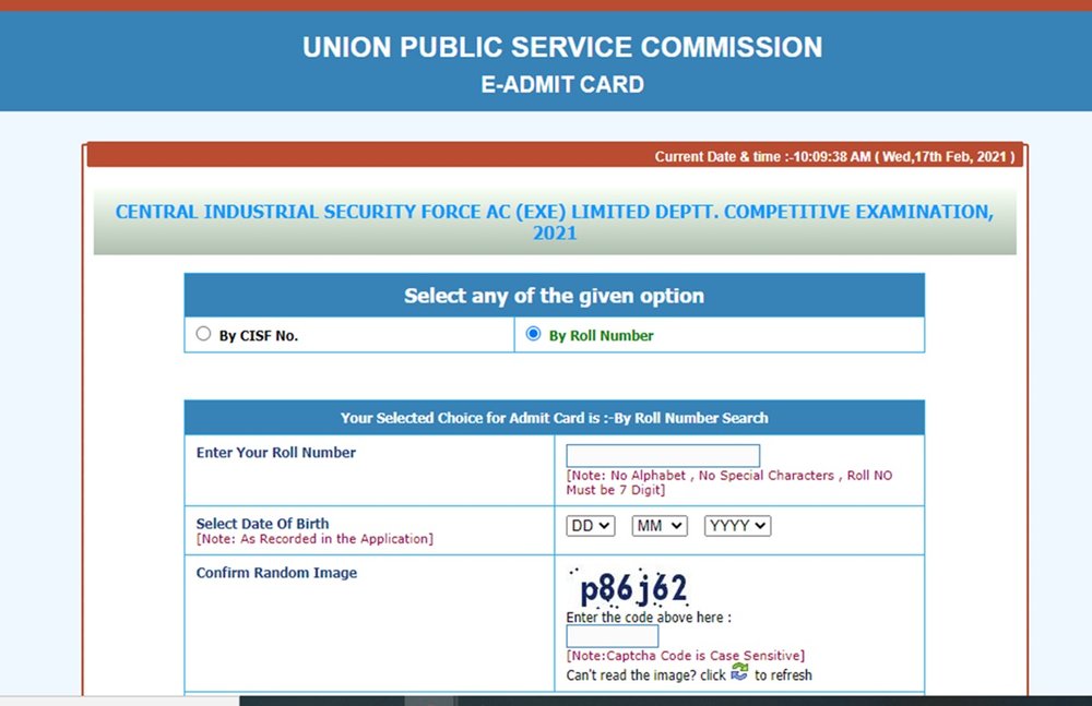 अब आपके सामने नया पेज खुल जाएगा। यहां आप आपना रोल नंबर या सीआईएसएफ नंबर सलेक्ट करके एडमिट कार्ड डाउनलोड कर पाएंगे।