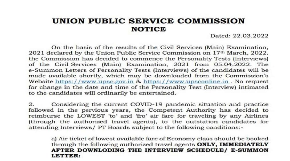 इंटरव्यू 5 अप्रैल2022 से शुरू होगा। आयोग ने 17 मार्च 2022 को मुख्य परीक्षा का रिजल्ट घोषित किया था। मुख्य परीक्षा में सफल अभ्यर्थी ही इंटरव्यू में शामिल हो सकते हैं। इंटरव्यू का आयोजन कोरोना सुरक्षा दिशा-निर्देश के तहत किया जाएगा। सभी परीक्षार्थियों को केंद्र पर मास्क लगाकर आना अनिवार्य किया गया है। अभ्यर्थी आधिकारिक वेबसाइट पर जारी गाइडलाइंस को चेक कर सकते हैं।