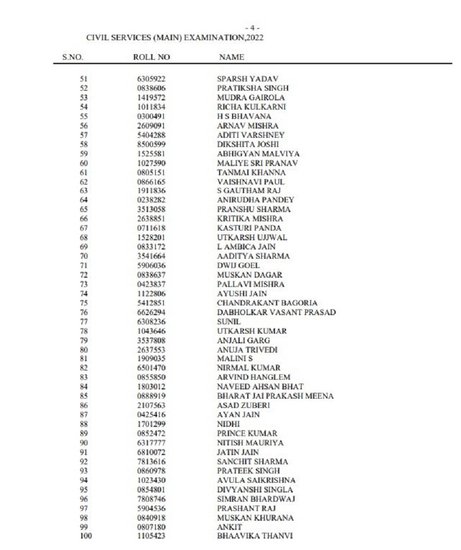 रिजल्ट के मुताबिक, सिविल सेवा परीक्षा में गरिमा लोहिया ने दूसरी और उमा हरीती एन ने तीसरी रैंक प्राप्त की है, जबकि स्मृति मिश्रा को चौथी रैंक मिली है। इसके अलावा, टॉप 10 में सभी लड़के कैंडिडेट शामिल हैं। नीचे देखें यूपीएससी के 10 टॉपर्स की लिस्ट-