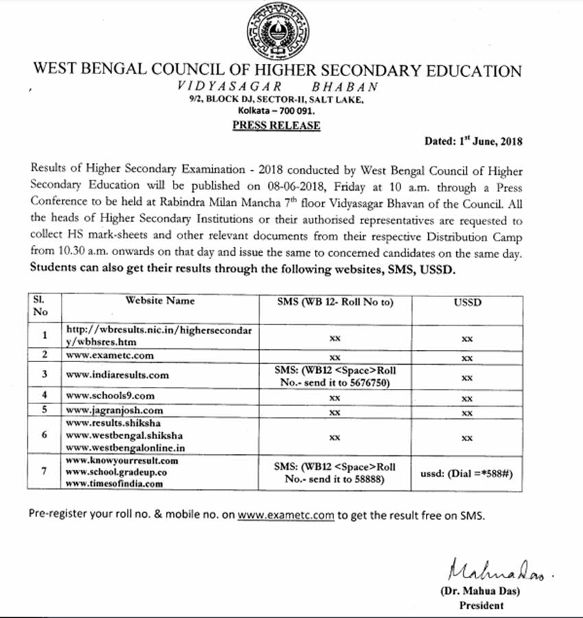 WBCHSE HS results 2018, WBCHSE HS 12th results 2018 Notification