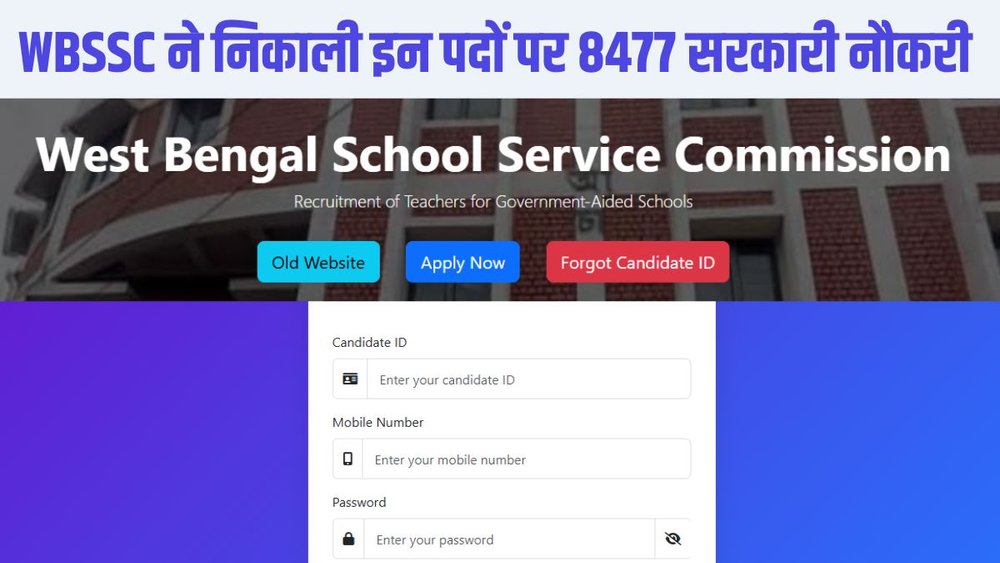 पश्चिम बंगाल स्कूल सर्विस कमीशन (WBSSC) ने बड़ी भर्ती का ऐलान किया है। आयोग ने 8,477 गैर-शिक्षण पदों के लिए प्रारंभिक नोटिफिकेशन जारी कर दिया है। योग्य और इच्छुक उम्मीदवार आयोग की आधिकारिक वेबसाइट westbengalssc.com पर जाकर ऑनलाइन आवेदन कर सकेंगे, जिसके लिए डायरेक्ट लिंक और स्टेप-बाय-स्टेप प्रोसेस के साथ इस भर्ती अभियान की पूरी जानकारी यहां दी गई है।