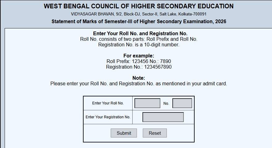 WBCHSE हायर सेकेंडरी सेमेस्टर 3 एग्जाम का रिजल्ट 12:30 बजे जारी हो गया था। 2 बजे के बाद परिणाम आधिकारिक वेबसाइट result.wb.gov.in और wbchse.wb.gov.in पर पब्लिश होने थे जो कि कर दिए गए हैं।
