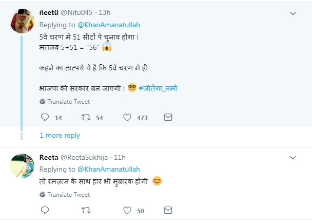 कुंवर अजयप्रताप सिंह लिखते हैं, ‘कहां लगे हो मिया अल्लाह ताला भी चाहता है मोदी जीते इसलिए ही ऐसा किया है…। वैसे तुम चाहो तो रमजान की तारीख बदल सकते हो पर चुनाव की तारीख तो ना बदलेगी।’ बता दें कि चुनाव आयोग ने 17वीं लोकसभा का चुनाव सात चरण में, 11 अप्रैल से 19 मई के बीच कराने का फैसला किया है। सातों चरण के मतदान के बाद 23 मई को मतगणना होगी।