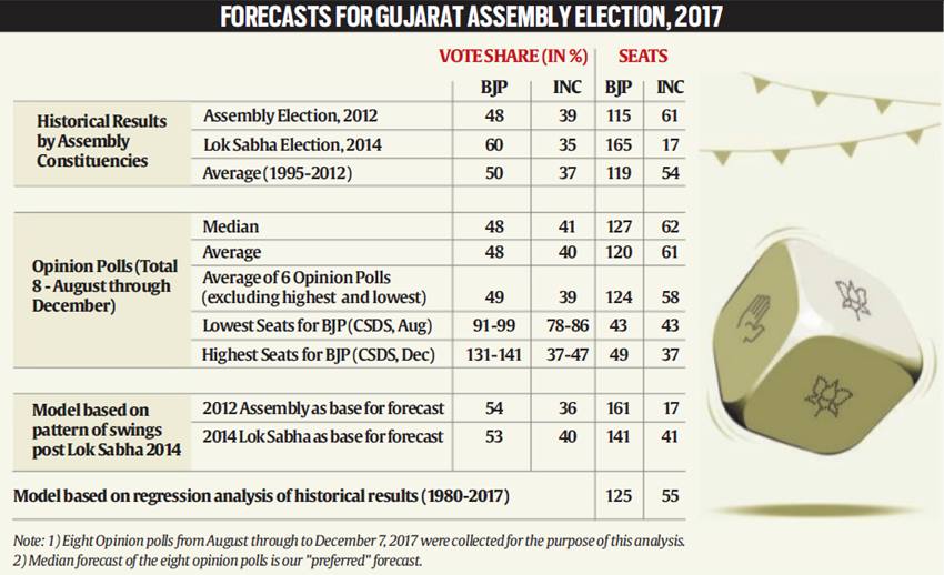 बिहार और उत्तर प्रदेश विधानसभा चुनावों की सटीक भविष्यवाणी करने वाले सुरजीत एस. भल्ला ने गुजरात चुनाव के बारे में दिलचस्प पूर्वानुमान लगाया है। उनका कहना है कि गुजरात में सत्तारूढ़ भाजपा को सौ से कम सीटें आने के जीरो चांस हैं। लेकिन, 130 से ज्यादा सीटें भी नहीं आएंगी। ऐसे में भाजपा के राष्ट्रीय अध्यक्ष अमित शाह की 150 सीटें आने की भविष्यवाणी सही नहीं होने जा रही है। इसको लेकर उन्होंने अपने विश्लेषण के आधार पर आंकड़े भी दिए हैं।