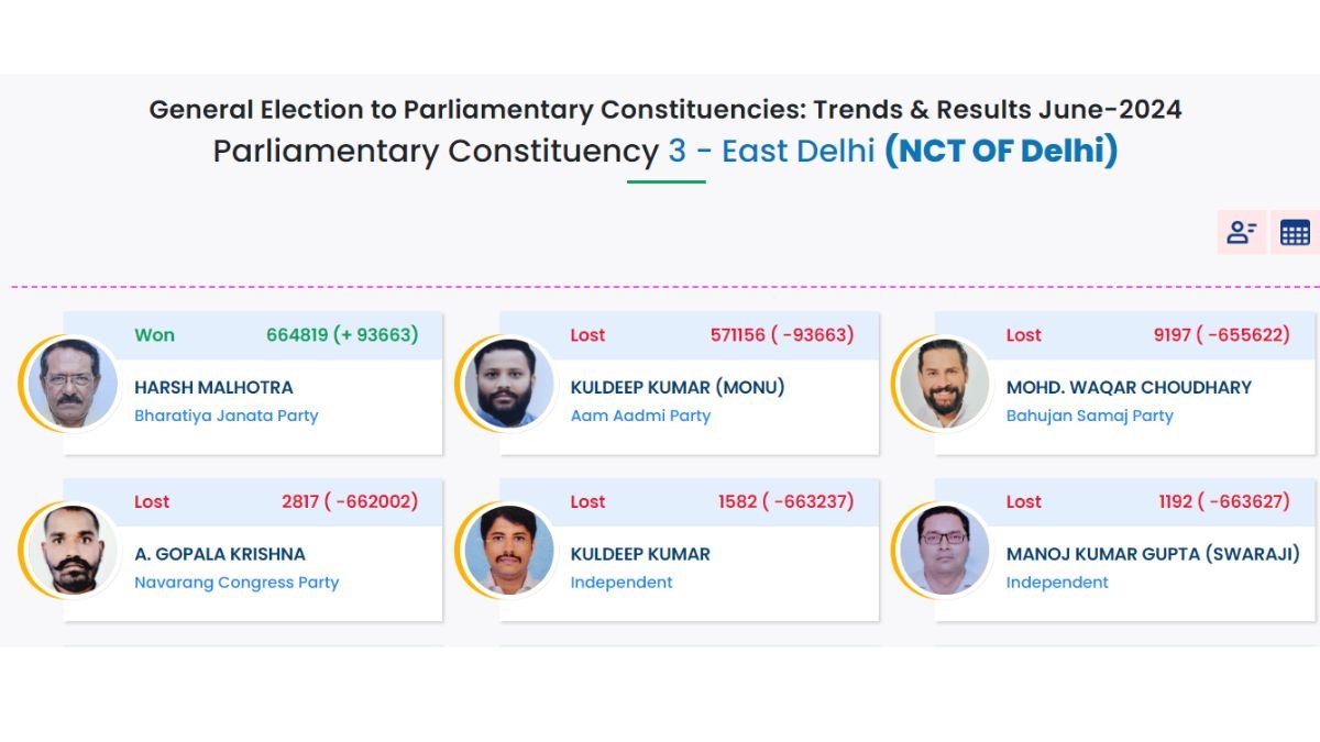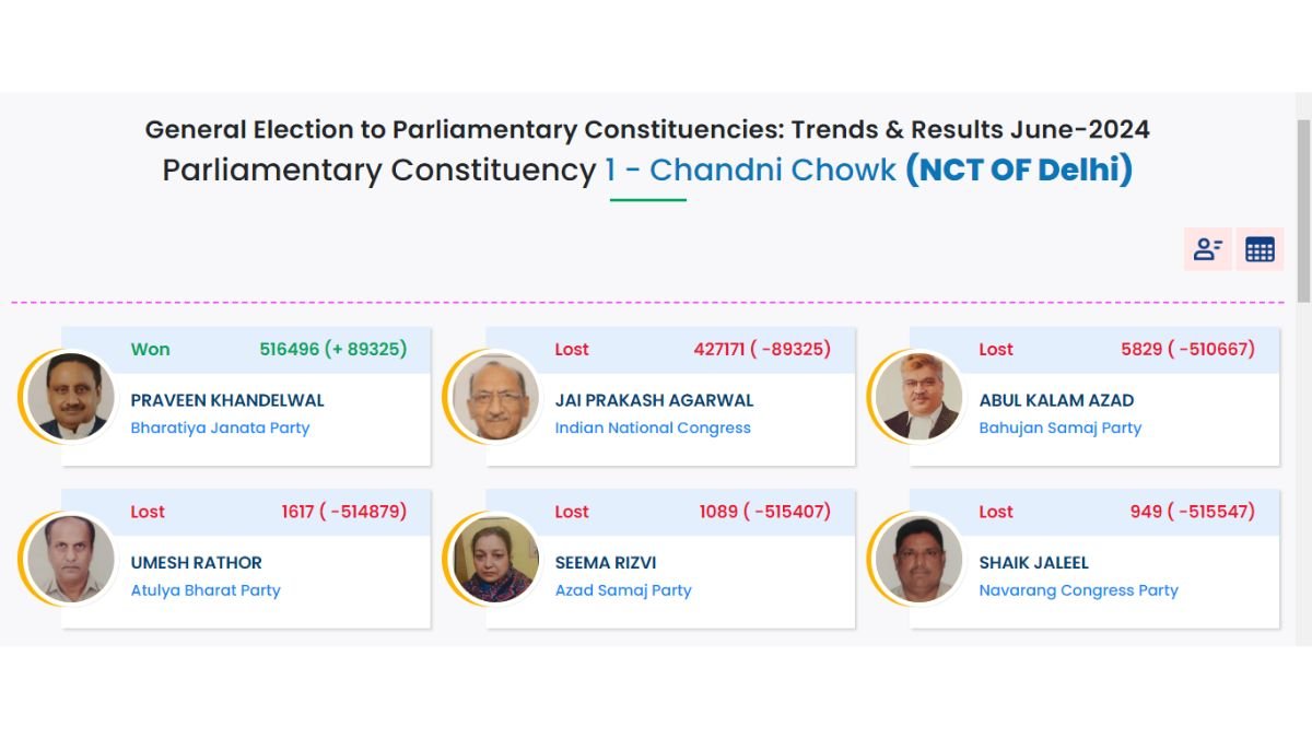 Delhi Lok Sabha Chunav/Election Result 2024 (दिल्ली लोकसभा चुनाव परिणाम 2024) ECI Delhi Election Results declared: लोकसभा चुनाव 2024 परिणाम कल यानी 4 जून को जारी कर दिया गया है और दिल्ली में बीजेपी ने पिछले चुनाव के प्रदर्शन को दोहराते हुए सभी सात सीटों पर जीत दर्ज की है।