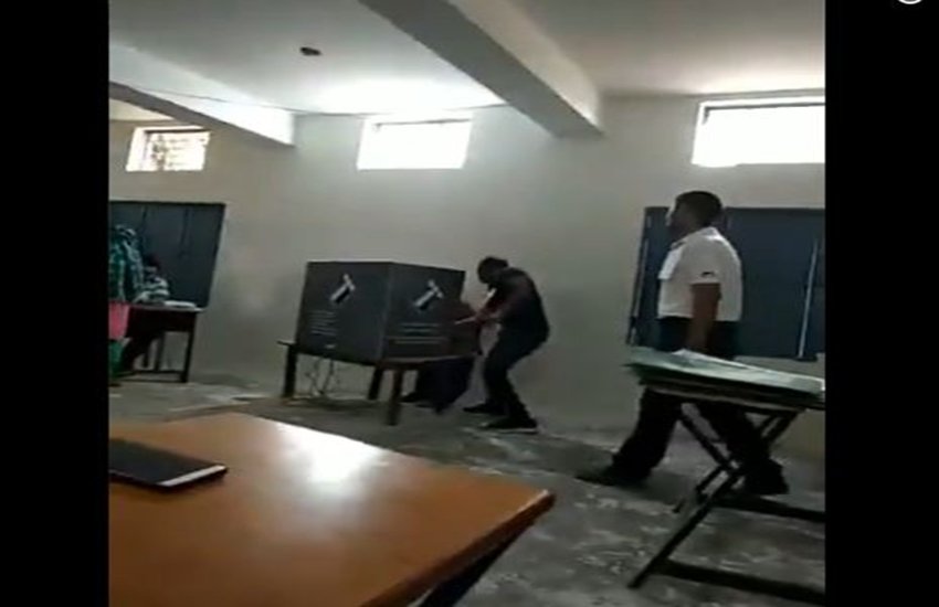 वीडियो में देखा जा सकता है कि नीले रंग की टी-शर्ट पहना एक शख्स असावटी के पोलिंग बूथ के अंदर मतदाताओं को प्रभावित करता नजर आ रहा है। वीडियो में पंक्ति में खडीं महिलाओं को भी देखा जा सकता है। जैसे ही कोई महिला वोटिंग कम्पार्टमेंट में दाखिल होती है नीली टी-शर्ट वाला यह शख्स वहां महिलाओं के पास पहुंचता है और ईवीएम मशीन का बटन दबाता हुआ प्रतीत होता है या फिर किसी पार्टी के चुनाव चिह्न को उन्हें बताता हुआ नजर आ रहा है। और इसके बाद वह अपनी सीट पर वापस आ जाता है। वह यही नहीं रुकता और अन्या महिला वोटर्स के साथ भी ऐसा ही करता है। हैरानी की बात यह है कि इस दौरान ड्यूटी पर तैनात अन्य अधिकारी उसे ऐसा करने से रोकते भी नहीं।