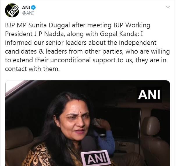 रानिया विधानसभा सीट से चुनाव जीते निर्दलीय विधायक रंजीत सिंह ने भाजपा को समर्थन देने का ऐलान किया है। रंजीत सिंह ने हरियाणा लोकहित पार्टी के नेता गोबिंद कांडा को चुनाव में हराया है।